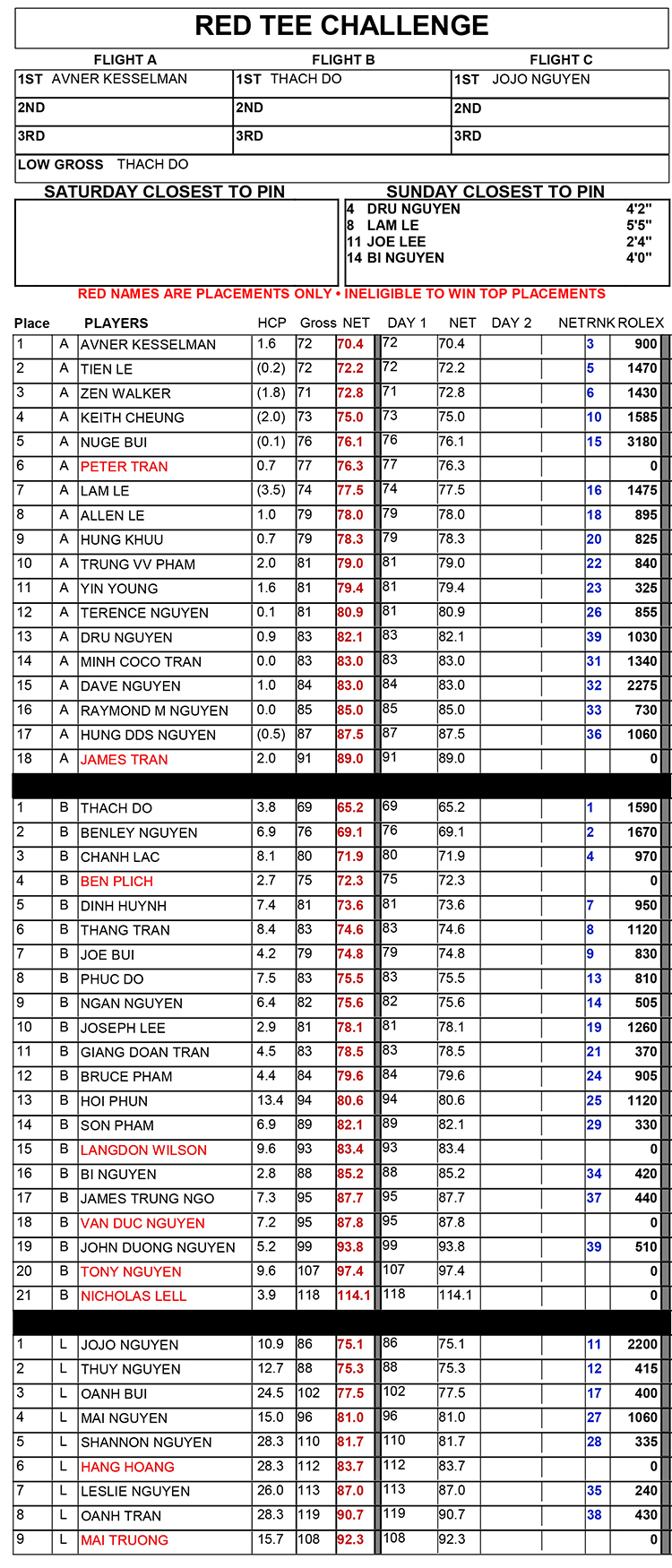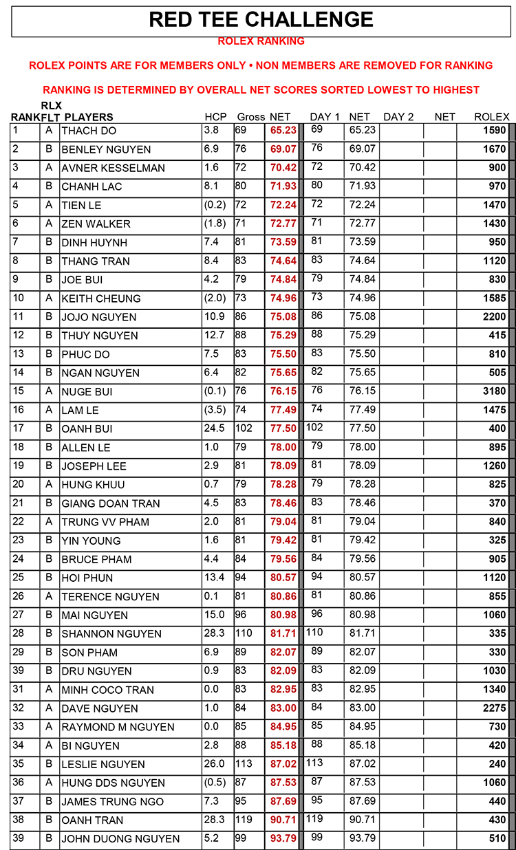 ROLEX RANKING FOR RED TEE CHALLENGE